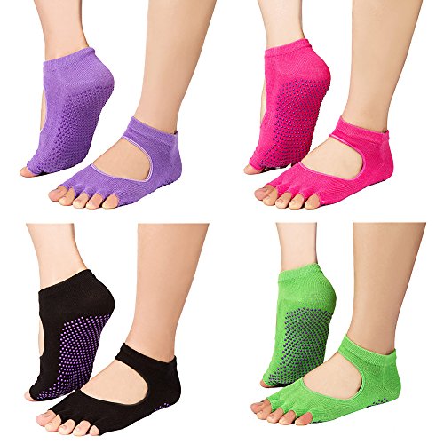 -. Feature : Material:90%cotton / Color:Pink,Purple,Black,Blue,Green / Silicone Particles:Half-toe Open-toe Backless Socks / Non-slip,reduce vibration,foot massage.Environmentally friendly fabrics:combed cotton,very comfortable / Application: Perfect yoga, pilates, dance, bary, martial arts socks, can be used at home, traveling and in the studio.