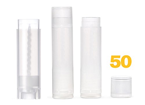 50 Lip Balm Stick Tubes empty clear lip balm tubes come with clear caps that are smooth and tight-fitting to ensure your DIY lip balm stays inside the empty clear lip balm tube with zero leaks and messes. These empty clear lip balm tubes are perfect for natural, organic, or other types of DIY lip balm, lip gloss or lipstick. 50 BPA free empty clear lip balm tubes and caps have a screw-drive follower to dispense a little or a lot of your homemade formula just like the name brands!