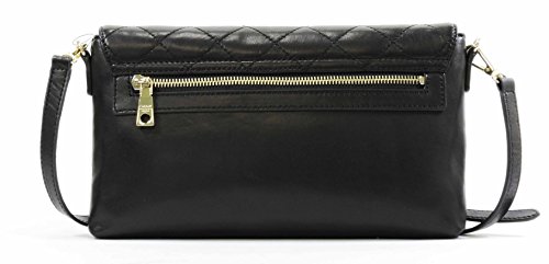 -. Feature : Quilted soft nappa leather with gold-tone hardware / 10.5" W x 6.5" H x 1" D / Adjustable crossbody strap / Snap closure / Interior features zip, cellphone and multi-function pockets