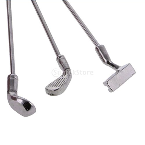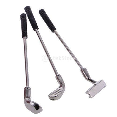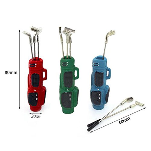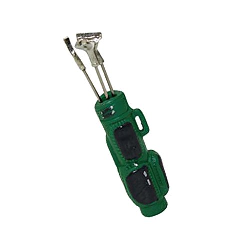 -. Feature : Miniature Golf Bag with 3 Golf Clubs for 1:12 Dollhouse Accessories / Exquisite design and excellent workmanship / Suitable for 1:12 dollhouse decoration / Material: Metal / Color: Green