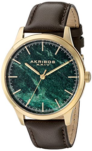 -. Title : Akribos XXIV Men's Gold-Tone Case with Green Marble Dial on Brown Genuine Leather Strap Watch AK937BRGN