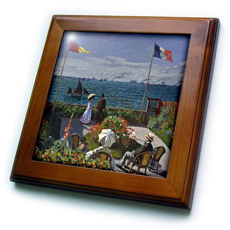 3D Rose Garden At Sainte-Adresse-Claude Monet Cropped Painting 1865-PD-US Framed Tile, 8" x 8"