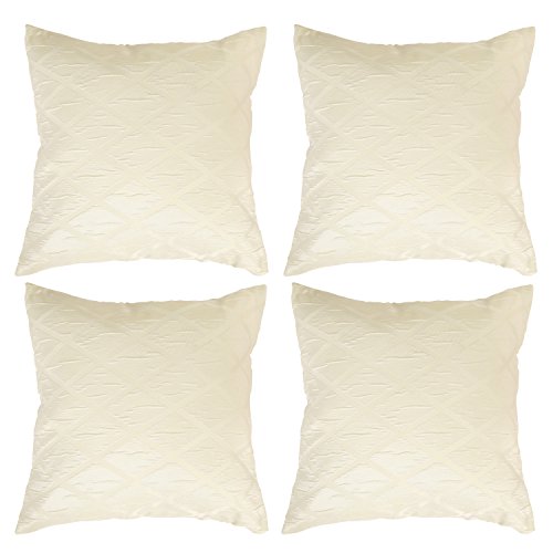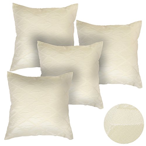 Deconovo Home Decorative Square Design Decorative Pillowcase Pillow Case Cushion Cover For Sofa 18x18 Inch 4 PCS Beige Without Pillow Insert