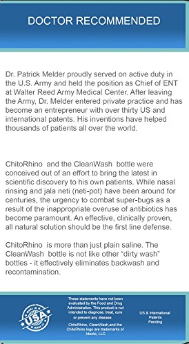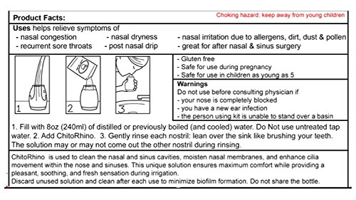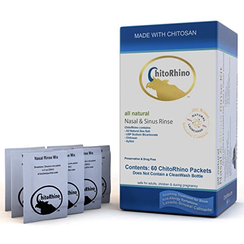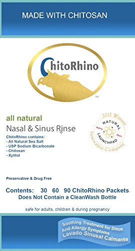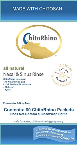 ReleaseDate : 2017-11-02 Studio : Inventory Management Services- HPC Publisher : Inventory Management Services- HPC Binding : Health and Beauty Product Description ChitoRhino Nasal Sinus Rinse Refill Packets with chitosan and buffered saline provides uncompromising nasal congestion relief without the harmful drugs found in traditional sinus congestion and nasal congestion products. The secret is the combination chitosan and a buffered saline mix which is all-natural - developed by a leading ENT surgeon to help his patients. ChitoRhino also contain xylitol. The simple four ingredient mix provides exceptional congestion relief and lets you know what you’re putting into your body. Chitosan is a 100% all natural carbohydrate ? the second most abundant carbohydrate on earth. Chitosan is known for its natural anti-bacterial, anti-fungal, and anti-inflammatory properties. The saline is sourced from all-natural sea salt and is excellent at improving necessary nasal mucus flow. If you are a regular sinusitis sufferer, or driven away by the multitude of side effects drug-laden allergy relief sprays can inflict on your body, then ditch the artificial formulations today and start feeling better. You may use with any traditional neti pot or any sinus rinse bottle. We recommend our CleanWash bottle with two valves and removable bottom. The unique design prevents bacterial backwash and contamination while the removable bottom allows for easy cleaning and drying. 0
