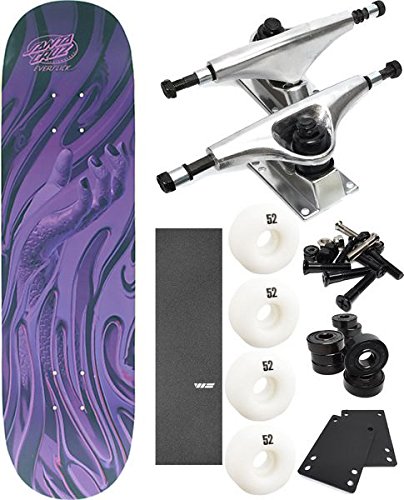 Studio : Santa Cruz Skateboards Publisher : Santa Cruz Skateboards Binding : Misc. Product Description This professional quality Santa Cruz Skateboards Oil Creep Everslick Skateboard Deck measures 8" wide x 31.6" long and is suitable for every skill level from beginner to pro. A versatile deck that's perfect for street, pool, park and vert, it's solidly constructed from high-quality 7-ply North American maple and is built to last. Holes have been predrilled to make skate truck assembly easy. The Essentials Component Bundle contains everything you need to take your board to the streets ASAP! This component bundle is built with budget-savvy skaters in mind. It offers solid strength and performance at an affordable price. Includes: One (1) Santa Cruz Skateboards Oil Creep Everslick Skateboard Deck, one (1) Essentials Component Bundle Includes 52mm White Wheels, Bearings, Hardware, Raw Trucks - 5.0" Hanger 7.75" Axle (Set of 2) and one (1) piece of Jessup WS Die-Cut grip tape. Note: Assembly is required. Once assembled, products cannot be returned or exchanged. 0