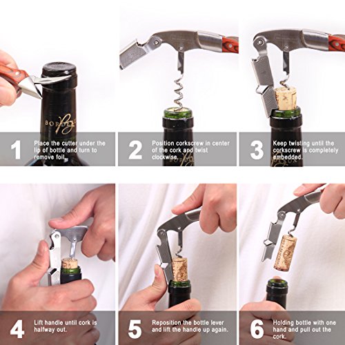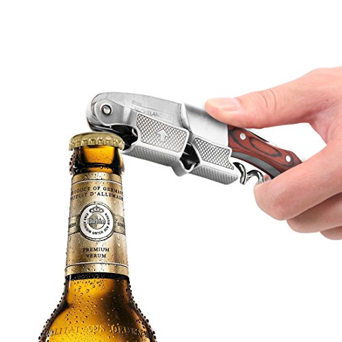 -. Feature : 3-in-1 MULTI-FUCTION - Our waiters Corkscrew that features a wine corkscrew, bottle opener and foil cutter. It works with all cork materials, natural, plastic or synthetic. The built-in, serrated foil cutter removes all types of foil, thus eliminating the need for another tool / HEAVY DUTY CONSTRUCTION& MADE OF HIGH-CARBON STAINLESS STEEL - all gear teeth are made of hardened metal, especially designed for easy insertion. Durable 304 Stainless Steel body with a sleek, elegant, ergonomically designed, wood handle which fits comfortably in your hand / PRATICAL AND HANDY DESIGN - Opener stands up on your bottle and uncorks in seconds / PROTABLE AND NICE TO CARRY - With a beautifully designed case, this corkscrew is easy and nice to carry around / Measures 12.5 x 3.4 x 1.7 cm when folded and 18 x 3.4 x 1.7 when expanded. Hand wash suggested