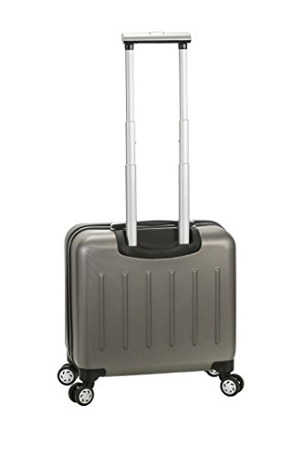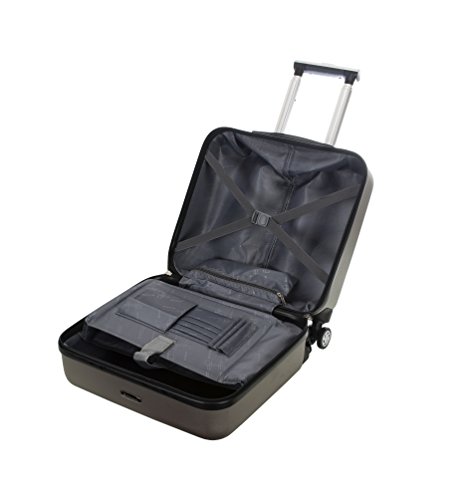 Studio : Fox Luggage Publisher : Fox Luggage Binding : Apparel Product Description Rolling business case includes a padded lap top compartment that fits 15 inch lap top, measures 16 inch l x 10 inch w x 14 inch h. Lightweight polycarbonate material. Front zippered compartment allows for quick-access. Silent dual wheel casters on 4 side allows for easy mobility and turns. One touch aluminum handle. Fits in most overhead bins. Features: push-button, self-locking internally stored retractable handle system, ergonomic and comfortable padded top grip handles, front full size zipper-secured pocket with business tool organizer, large middle compartment for files, catalogs and magazines, three internal organizational pockets for all your traveling needs. Fits most 15-inch to 15.4-inch widescreen laptops. Zippered mesh compartment to safely store your most sensitive documents. 0