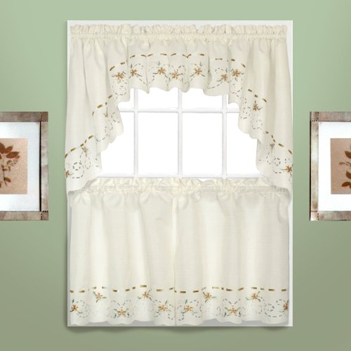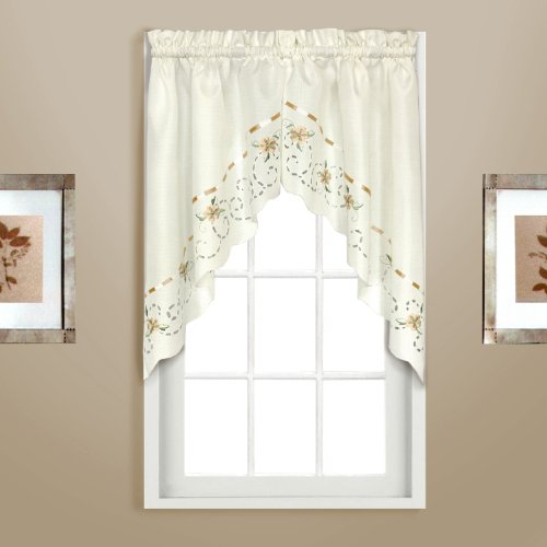 United Curtain Rachael Embroidered Swags, 60 by 30.5-Inch, Taupe, One pair