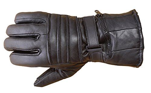 -. Feature : Fully insulated Thermal lining / Zippered pocket on each glove / Double seams at strategic points for added protection. / 100% guaranteed sheep leather for warmth and durability / Adjustable strap at wrist for custom fit
