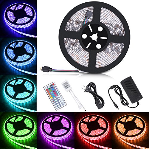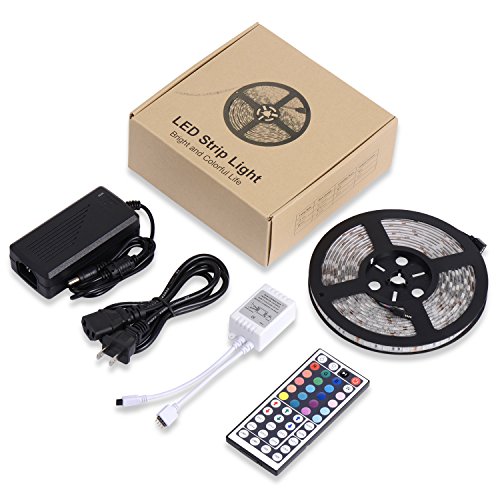 Boomile BL600 16.4ft LED Strip Lights, SMD 5050 300LEDs Waterproof RGB Light Strips Color Changing Flexible LED Light Strip Kit DC 12V Power Adapter + 44Key IR Remote Controller for Kitchen Bedroom