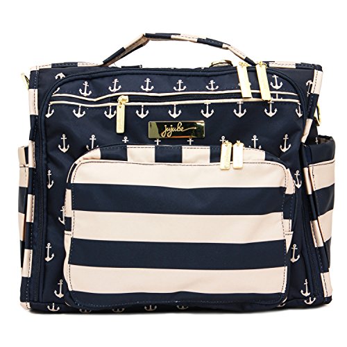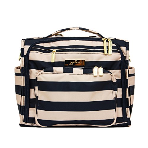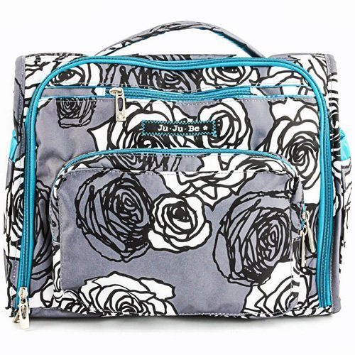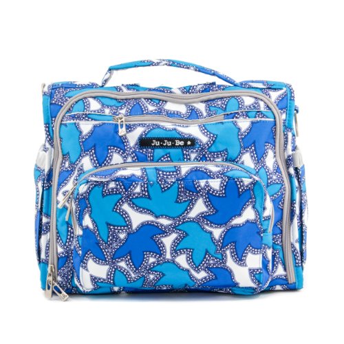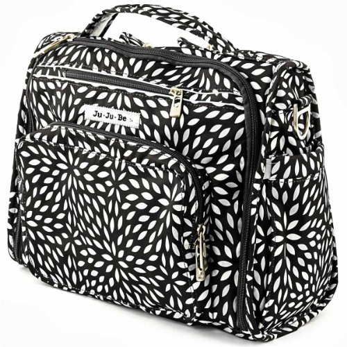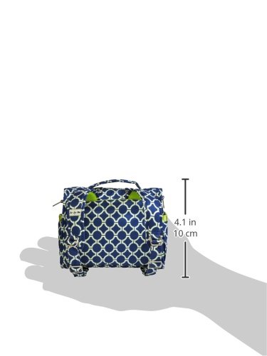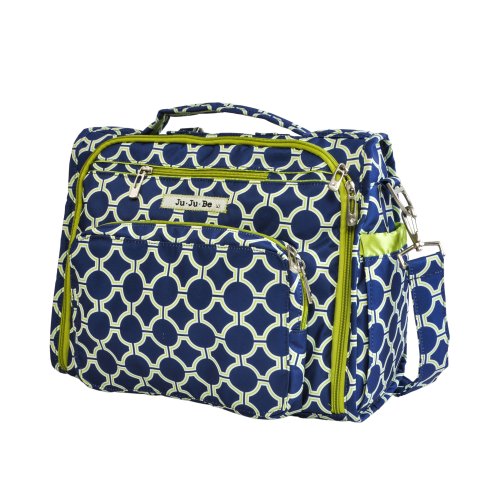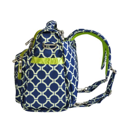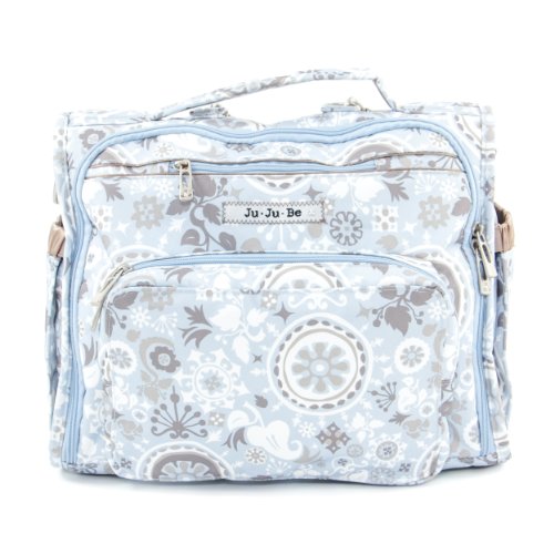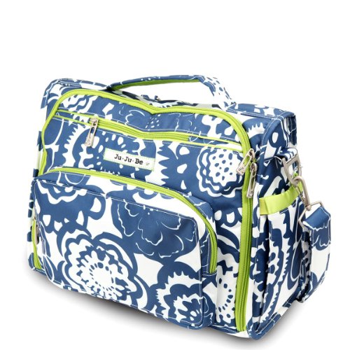 The Ju-Ju-Be B.F.F. Convertible Diaper Bag provides multiple carrying and storage options to help you stay ultra-organized. Just like your B.F.F., this machine washable backpack is something you cannot live without! Designed with convenience and comfort in mind, this versatile bag can be carried using its top handle, over-the-shoulder strap or backpack straps. The memory foam straps have textured fabric underneath to prevent the bag from slipping off your shoulder. Keep organized and sane, while never sacrificing looking good! The bag's lining is protected with Agion natural antimicrobial treatment, which inhibits and reduces the growth of odor-causing bacteria, mold and mildew. The outer fabric is treated with Teflon fabric protector, so you can repel stains and keep it clean. The front "mommy" zippered pocket is large enough for smartphones, wallets, keys attach to the key fob stretch cord, and other personal items. Inside organization includes (4) gusseted pockets, (3) zippered pockets and lots of wide open space! The main zippered pocket is large enough for diapers, wipes, extra clothes and other items. The back pocket is designed with crumb drains to keep this area clean, is large enough to store your child's books, and includs a super cushy matching memory foam changing pad. Bottle pockets are located on either side of the bag and come insulated with Thinsulate by 3M to keep your items hot or cold. The Royal Envy print is accented by silver colored hardware, including luggage feet to keep the bottom of your bag clean when you set it down. With the B.F.F. Diaper Bag, you can choose to wear it as a backpack or messenger style - it’s your choice. Whichever you choose, the B.F.F. has your back, just like every B.F.F. should! The Ju-Ju-Be B.F.F. Convertible Diaper Bag comes with a 90-day limited warranty that protects against manufacturing defects.Feature