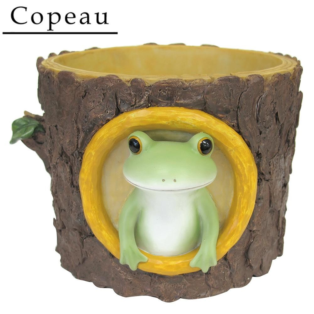 細かいシチュエーションが楽しいコポーワールド♪お庭を楽しく彩ります♪ 製造国:中国 素材・材質:ポリレジン 商品サイズ:W19×D19×H13cm、内寸:14×14.5×深さ11.5cm 仕様:4号鉢サイズ ※サプライヤー直送品 ご注文後5~6営業日後の出荷となります【商品名】Copeau(コポー) カエルと切り株の鉢カバー 71766