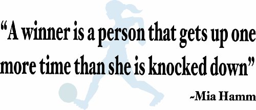 Design with VinylA Winner Is A Person That Gets Up One More Time Than She Is Knocked Down Mia Hamm Soccer Sports Quote Girl Bed Room Wall Decal Size: 8x20 Color: BlackBlack