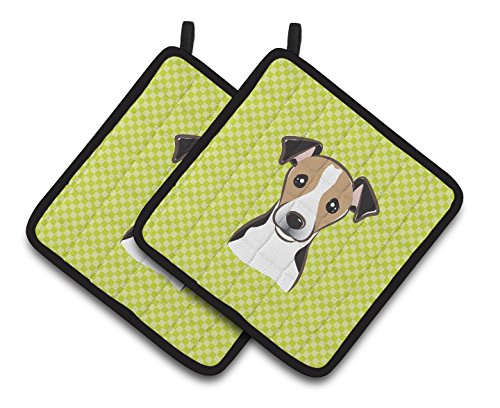 Caroline's Treasures Checkerboard Lime green Jack Russell Terrier Pair of Pot Holders BB1323PTHD, 7.5HX7.5W, Multicolor