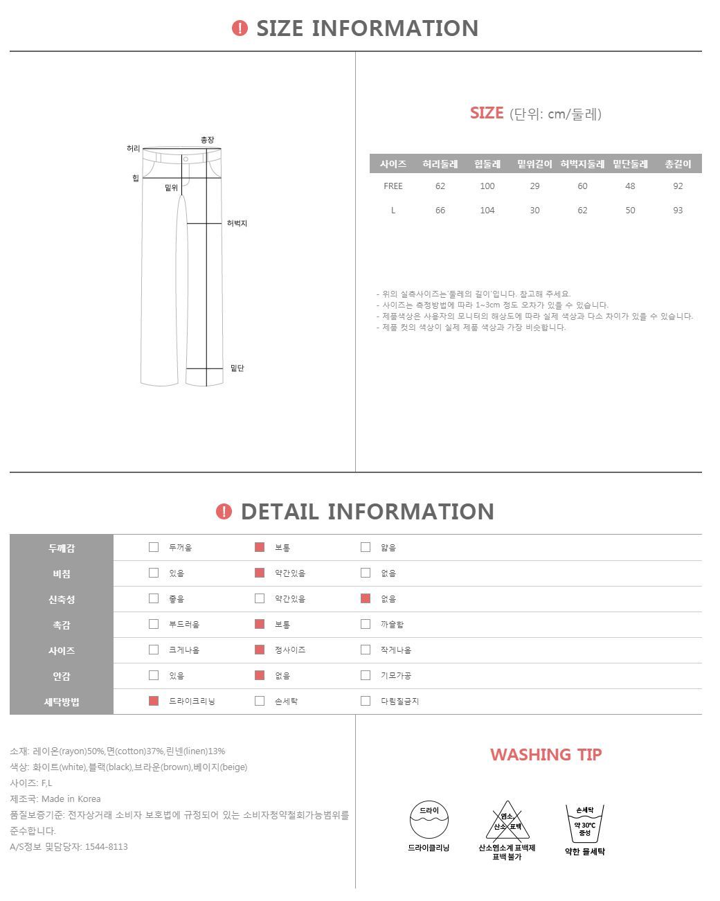 어닛드 백밴딩 린넨 팬츠 #73656 다가오는 계절에 빠질 수 없는 면,린넨 소재의 편안하고 스타일리시한 와이드 팬츠 소개할께요~ 높게 잡힌 세미하이웨스트 허리라인과 여밈없는 디자인으로 허리라인에 들어간 절개라인은 슬림한 라인을 연출하는데 효과적이에요 허리 뒤쪽의 짱짱한 밴딩은 입고 벗기 편안하면서 전체적으로 여유있는 사이즈감으로 편안하고 손쉽게 스타일링 가능한 아이템이랍니다~ 캐주얼하면서도 모던하게 스타일링 가능한 와이드팬츠로 티셔츠,자켓과 함께 스타일링 하시면 예쁜 골반라인과 날씬한 실루엣으로 연출하기 좋아요 컬러에 따라 다른 느낌으로 스타일 연출이 가능해 컬러별로 소장하셔도 good! 추천드려요^^ COLOR,SIZE TIP 컬러는 화이트,블랙,브라운,베이지으로 구성되어 있으며, 모델의 착용 컬러는 베이지,화이트/F 입니다. 사이즈는 F,L 사이즈로 진행되오니 고객님의 체형에 맞게 선택하셔서 예쁘게 착용하시길 바랍니다.