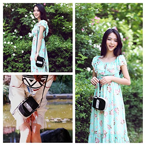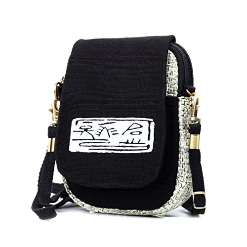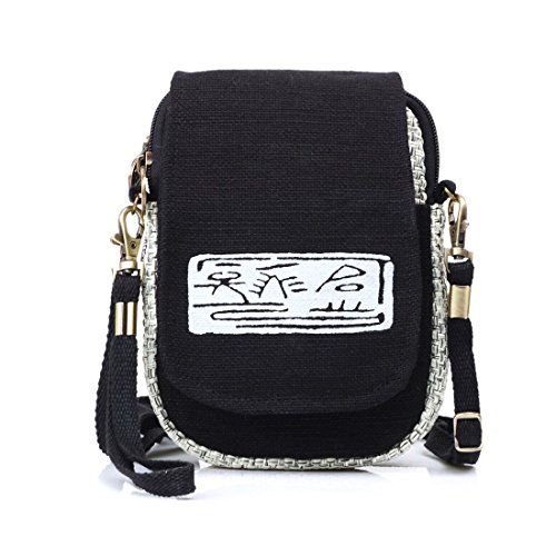 Goodhan Embroidery Canvas Crossbody Bag Cell phone Pouch Coin Purse for Women Girls (Black)