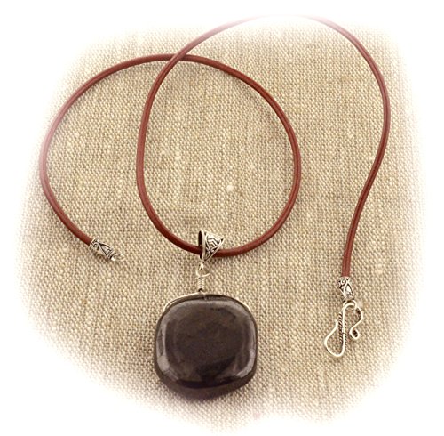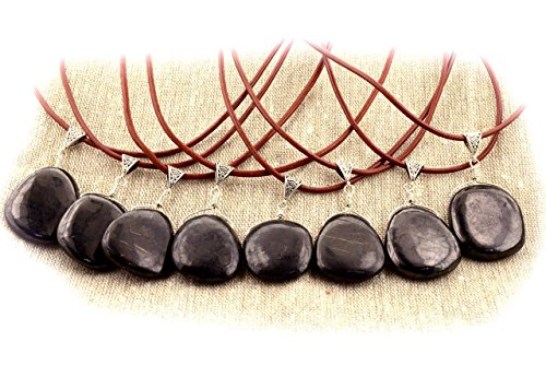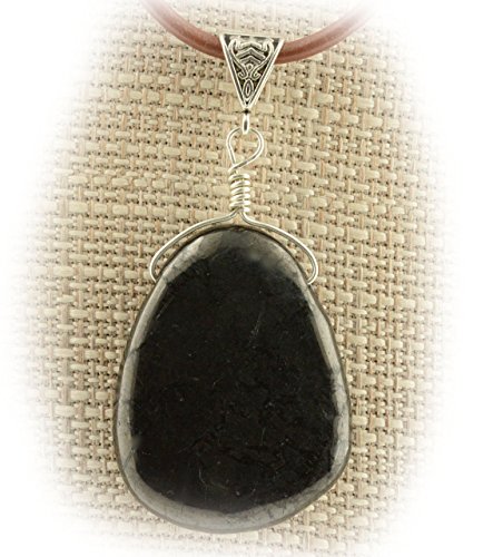-. Title : Shungite Wire Wrap Pendant Necklace with Leather Cord PB-5