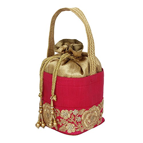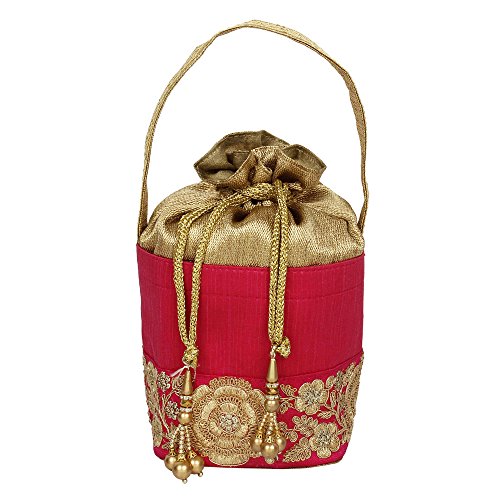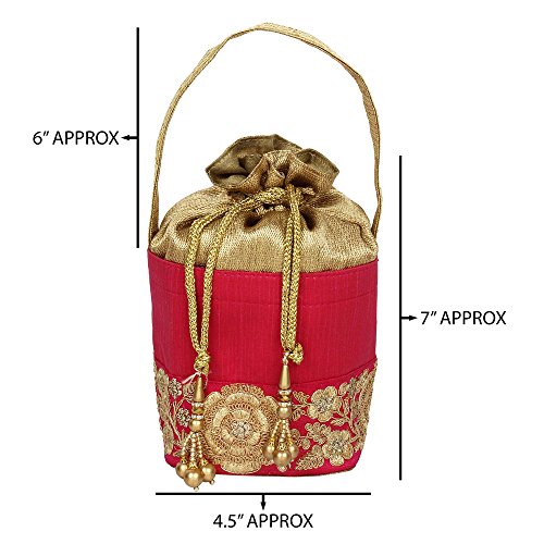 (Purse Collection)/Accessories/Handbags/DIRECT FROM USA/Purse Collection Stylish Drawstring Red Colour Potlli With Embroidery Work Purse For Women's