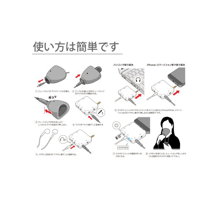 【근처에 폐를 끼치지 않고,iPadiPhoneAndroid스마트 폰 PC에 카라오케 연습을 할 수 있는 방음 마이크부 카라오케 세트】---- ●「시끄럽지 않은 컬러OK!뮤《도마이쿠》2 Plus」서는「iPad&iPhone시리즈」「Android 스마트 폰」「Windows PC」「Macintosh」등,여러가지 디지탈 기기에의 접속에 대응했다, 방음 마이크부의 카라오케 세트입니다●마이크에 붙인「뮤《도》(방음)컵」가 가성의 누락을 큰폭으로 컷 해 주기 때문에.음누락을 마음에 두는 일 없이 자신만의 세계에서,카라오케를 마음껏 즐길 수 있게 됩니다●이어폰(별매)를 사용하면,백 뮤직뿐만 아니라,자신의 가성도 이어폰 넘게 들을 수 있는 때문에,카라오케의 연습으로도 적합입니다●※본 제품에 카라오케 어플리케이션은 부속 하고 있지 않습니다.