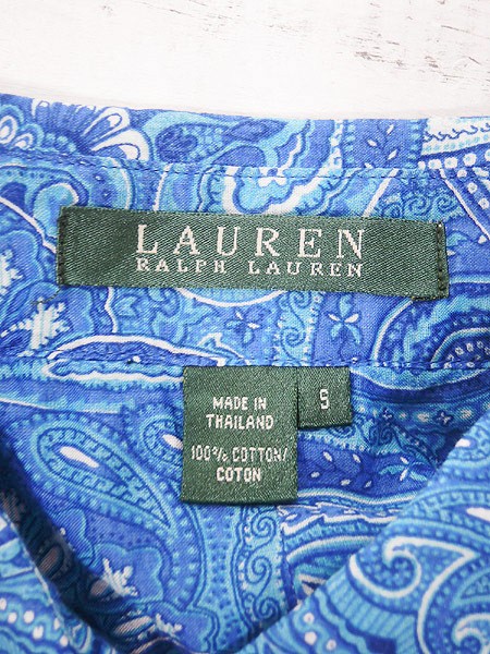 Ladies ブランドLAUREN RalphLauren ローレン ラルフローレン カラー青 メール便不可 コンディション★★★ 素材コットン 表記サイズS 実寸サイズ 着丈 67 cm 身幅 50 cm 肩幅 40 cm 袖丈 62 cm ※ウエスト・ヒップ以外は平置き採寸