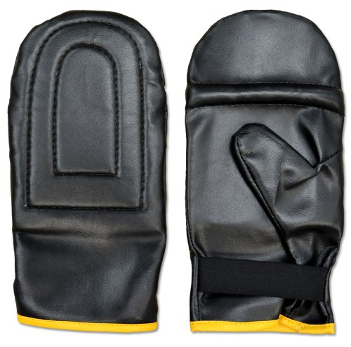 -. Binding : Misc. -. Brand : Ring to Cage -. Color : Black/Yellow -. Department : mens -. Feature : Economy cardio boxing bag Mitt / Synthetic Leather, flat style lightweight bag Mitt, 0.5 inch rubber and foam multilayer padding. Slip on style with elastic wrist strap for secure wrist support. / This mitt is also great for speed bag and double end bag use / One size, fits small, medium and large size -. IsAutographed : 0 -. IsMemorabilia : 0 -. Label : Ring to Cage -. Manufacturer : Ring to Cage -. MPN : FKBM -. PartNumber : FKBM -. ProductGroup : Sports -. ProductTypeName : SPORTING_GOODS -. Publisher : Ring to Cage -. Size : One Size -. Studio : Ring to Cage -. Title : Economy Cardio Boxing Light Bag Mitt - One size