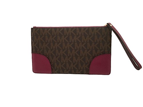 Michael Kors Fulton Leather Clutch Wristlet Wallet Brown Plum PVC