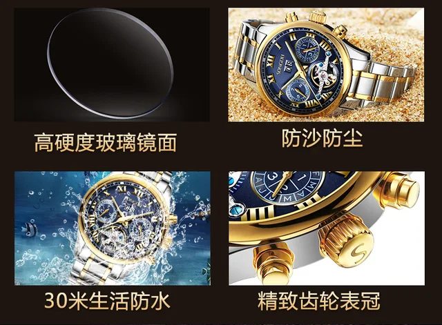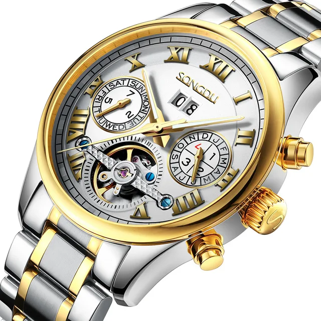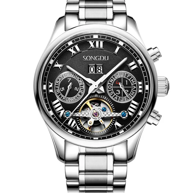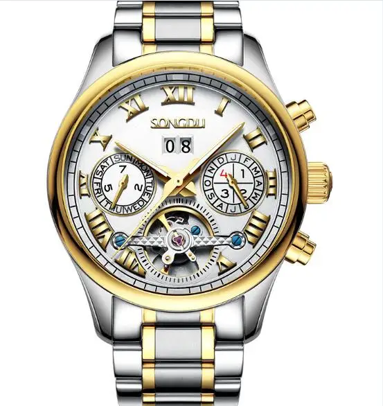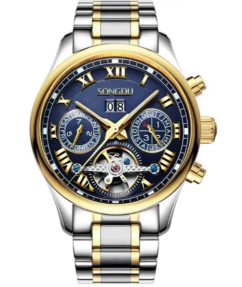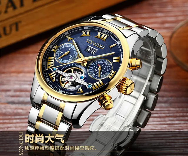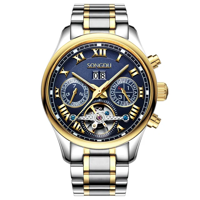 | [해외] SONGDU 패션 중공 스틸 남성 시계 방수 밤의 인광 달력 레저 뚜르 비옹 남성 기계 시계 reloj 험 브레 |