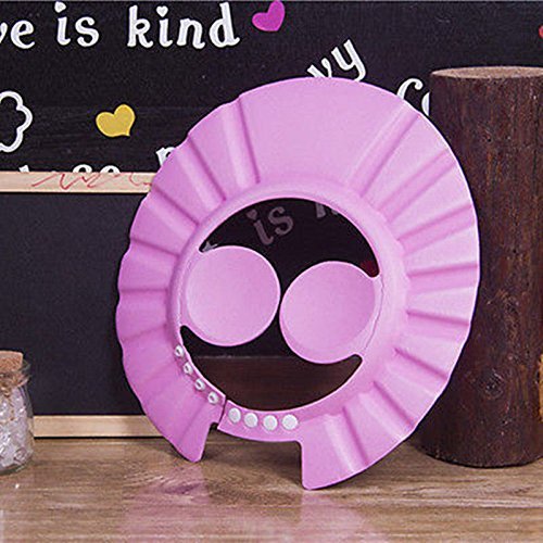 -. Title : iBePro® Baby Shower Bathing Cap with Ear Protection Soft Shower Cap Hat Wash Hair Shield For Children Kids to Keep the Water Out of Their Eyes & Face (Pink)