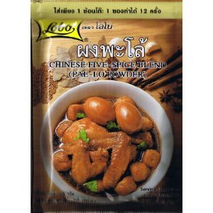 -. Binding : Misc. -. Brand : JKmart -. Feature : Actual product packaging and materials may contain more and different information than what is shown on our website. We recommend that you do not rely solely on the information presented and that you always read labels, warnings, and directions before using or consuming a product. -. Label : JKMart -. Manufacturer : JKMart -. Model : JK037 -. PackageQuantity : 1 -. ProductGroup : Grocery -. ProductTypeName : GROCERY -. Publisher : JKMart -. Studio : JKMart -. Title : Thai Food Chinese Five-Spice Blend (Pae-Lo Powder) Lobo Recipe Cuisine Menu Cooking (65g.)
