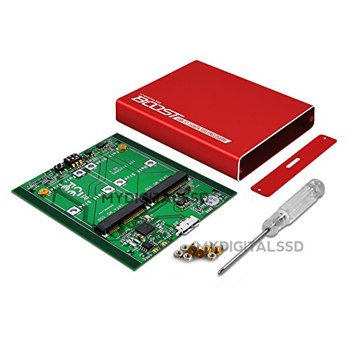 The MyDigitalSSD BOOST USB 3.1 SuperSpeed Plus (SSP) enclosure turns any full-size 50mm or half-size 25mm mSATA SSD into an ultra-portable external storage device, or any two mSATA SSDs into a mobile hardware RAID solution. Ideal for backing up primary drives, accessing data/apps on the go, high-speed file transfer between devices, expanding your current storage, or running a mobile operating system - the MyDigitalSSD BOOST enclosure helps get more from your mSATA drive(s).Feature
