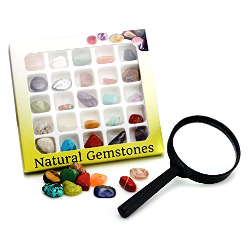 - Feature : This beautiful collection of polished gemstones is a must for the beginner or seasoned gemstone collector. / 25 different variety Gemstones. / Mineral samples range between 3/8 - 1/2 inch / Indcluded Magnifier that can observe, learn to test, classify and identify Gemstones. / Educational and fun