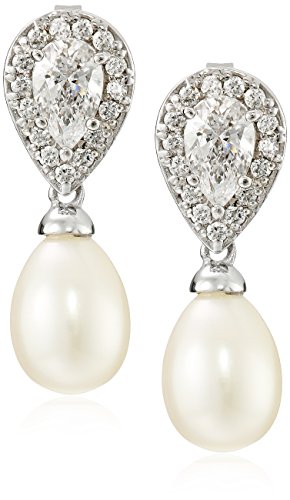 -. Feature : Sterling silver earrings with pear-shaped pave Swarovski zirconia crystals and freshwater-cultured pearl drops / Friction-back closure / Imported