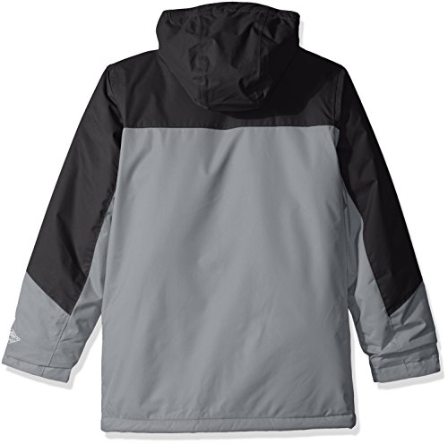 The boys' Double Grabâ"¢ Jacket has the lightweight weatherproof performance and low-loft insulation to keep him on the snowboard practicing his nose grabs and rail grinds until the last lift. Regular Fit is an easy, lightly relaxed fit for comfortable range of motion. Omni-Techâ"¢ shell:• Two-layer design with plainweave outer and waterproof membrane.• Waterproof, windproof and critically seam-sealed protection.• Breathable design allows passage of moisture-vapor from perspiration. Microtemp XF II insulation:• Polyfill insulation offers warmth without excessive bulk.• Crimped design increases surface area for improved warmth retention.• 100 g/m² fabric weight. Omni-Shieldâ"¢ lining:• Dries several times faster than traditional fabric.• Retains less moisture than conventional material to stay lighter even when wet. OUTGROWNâ"¢ grow system extends sleeves for cross-season wear. Attached storm hood with elastic binding and adjustable, hook-and-loop back. Front zip with inner draft flap and zipper garage. Long sleeves. Hook-and-loop tab cuffs. Zip chest pocket. Zip hand pockets. Inner mesh goggle pocket. Snap-back powder skirt with silicone-taped elastic binding. Straight hem. Reflective taping improves low-light visibility. Body: 100% polyester;Insulation: 100% polyester;Lining: 100% nylon. Machine wash and tumble dry.Feature