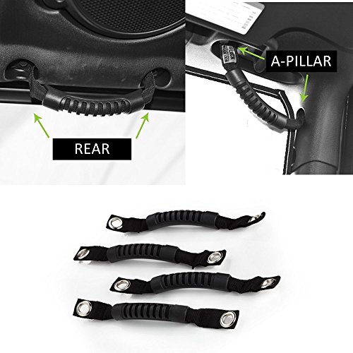 Opall 4 X Windshield Pillar Rear Seat Grab Handles Grip Handle handlebar for Jeep Wrangler YJ TJ JK JKU Sports Sahara Freedom Rubicon X & Unlimited X 2/4 door Roll Bar 1995-2016