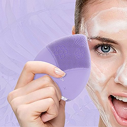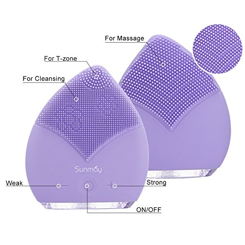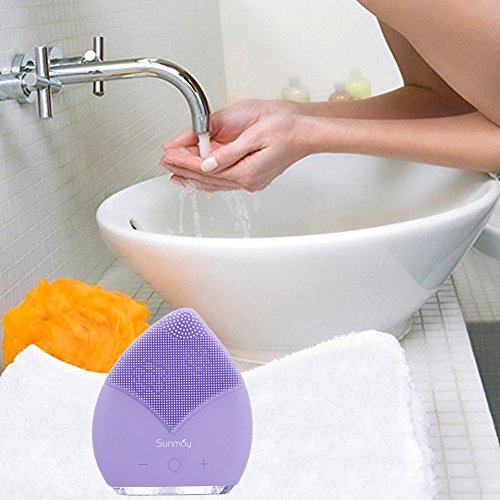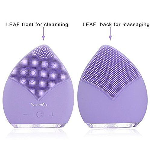 SUNMAY Sonic Facial Cleansing Brush and Face Massager, Rechargeable IPX5 Waterproof Organic Silicone Face Cleanser (Purple)