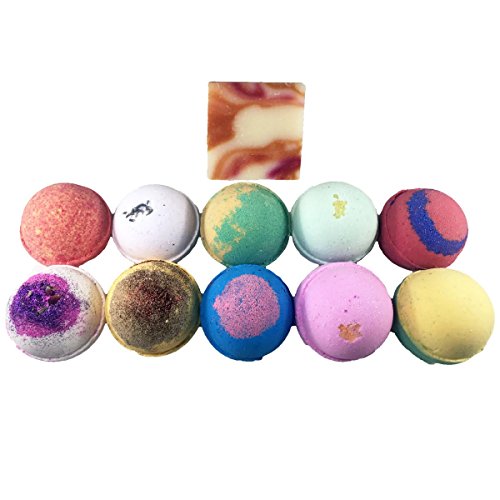 Amor Bath Bombs, Free Soap Bar Included, All Natural Essential Oil Lush Fizzies, Organic Shea Butter, Great for Dry Skin, Gift for Her or Him, Large, 10 Piece
