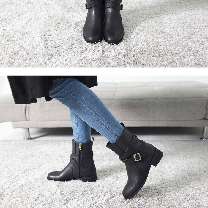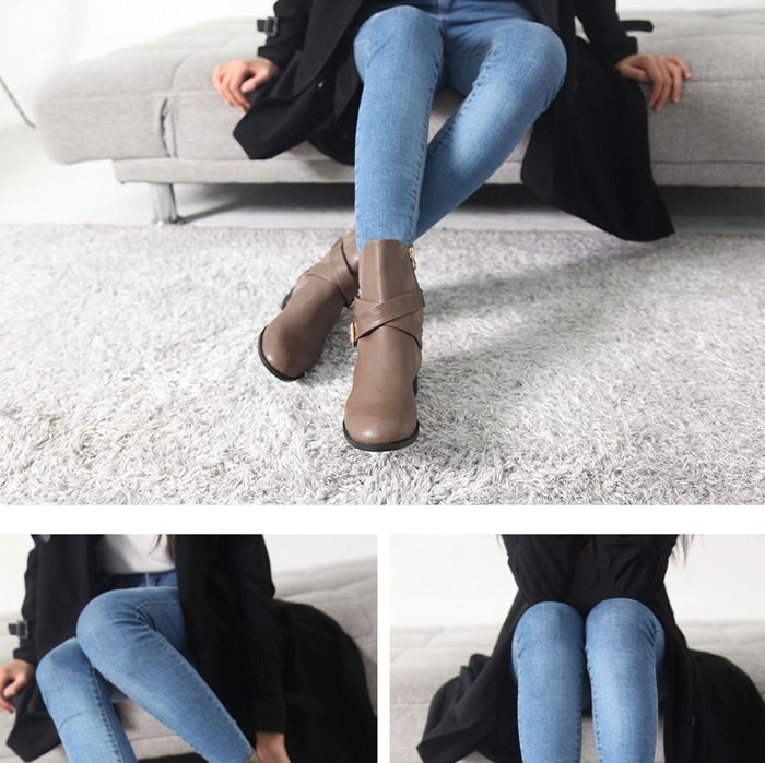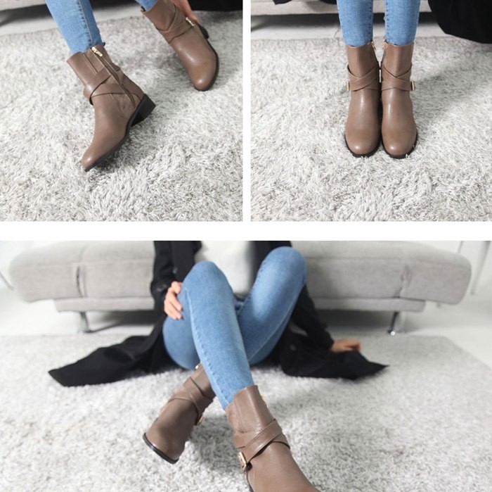 商品名:ショートブーツ レディース ローヒール クロスストラップ 2017 秋冬 ファッション 靴 婦人靴