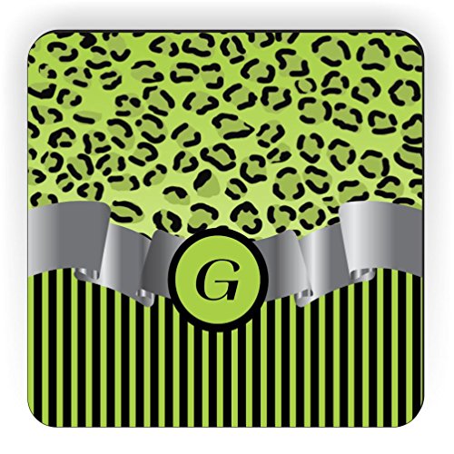 Rikki Knight Letter "G" Initial Lime Green Leopard Print and Stripes Monogrammed Design Square Fridge Magnet
