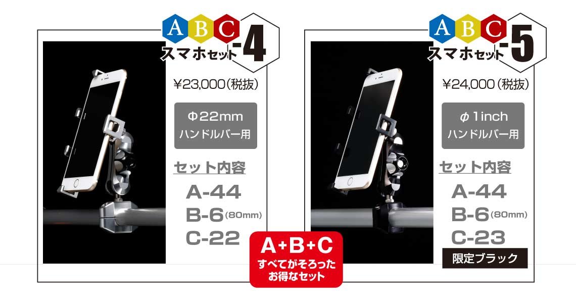 - A set for people who want to mount smartphones on φ22.2 bar handles that are often found in domestic manufacturers such as Naked.