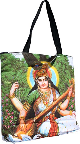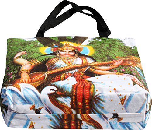 RaanPahMuang Large Shopping Tote Bag Hindu Art God on Lotus with White Swan