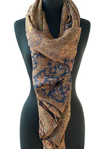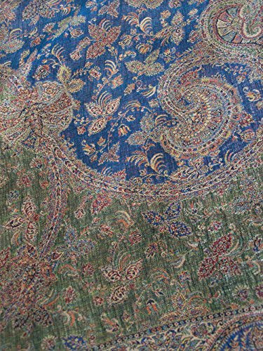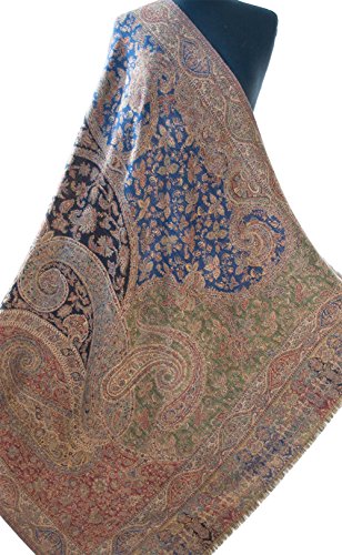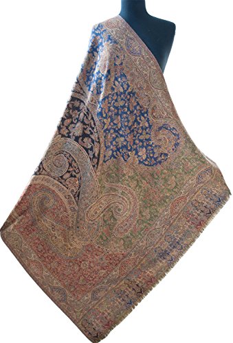 (Heritage Trading)/Accessories/Scarves/DIRECT FROM USA/Large, Royal Blue, Hand-Cut Kani, Wool Shawl. 81” x 42” Ivory Wrap Flowers Vine