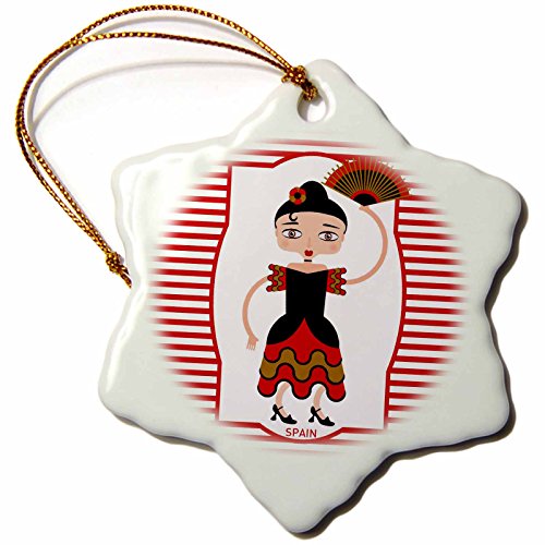 3dRose LLC orn_160621_1 Porcelain Snowflake Ornament, 3-Inch, "Spain is Represented by a Flamenco Dancer, Flamenco is Spanish Popular Folk Music"