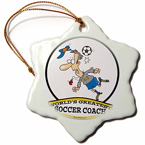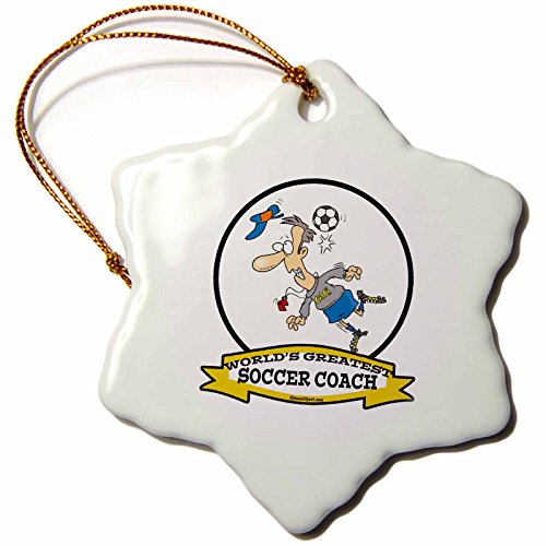 3dRose LLC orn_103567_1 Porcelain Snowflake Ornament, 3-Inch, "Funny Worlds Greatest Soccer Coach Occupation Job Cartoon"