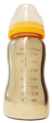 Free of-Bisphenol-A (BPA), phthalates, nitrosamines, lead, PVC, PET, and biologically harmful chemicals. No Spill nipple!!! features our cross cut design. The design also mimics natural breastfeeding as it requires your little one to nurse to receive fluid. Anti-colic nipple helps reduce incidence of gas and spit up. Unique one-piece design eliminates cleaning headaches and tricky assembly. No extra parts to lose. Extra soft, medical grade silicone-provides easier transition from breastfeeding to bottle feeding. Thinkbaby of Steel is made from 304 (18/8) ultra polished stainless steel. The bottle also features side measurement markings. Comes with Stage A nipple (for 0-6 months and marked with a number 2 on the nipple). Also available: Stage B nipple (for 6+ month and marked with a number 3 on the nipple). The transformational line-The Thinkbaby system allows parents to transform baby bottles to our award winning Sippy Cup through purchase of the Conversion Kit. The system saves parents money and the environment from discarding baby bottles when its time for the next stage in feeding. Comes with Travel Top reduces chance of spillage during travel and protects the nipple from coming into contact with foreign substances. Dishwasher safe (Top rack recommended) Does not leach chemicals to adversely affect the environment.
