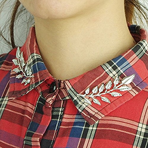 -. Title : 【ノーブランド品】レディース レトロ 襟ピン ラペルピン ブローチ リーフ型 (シルバー) 1組