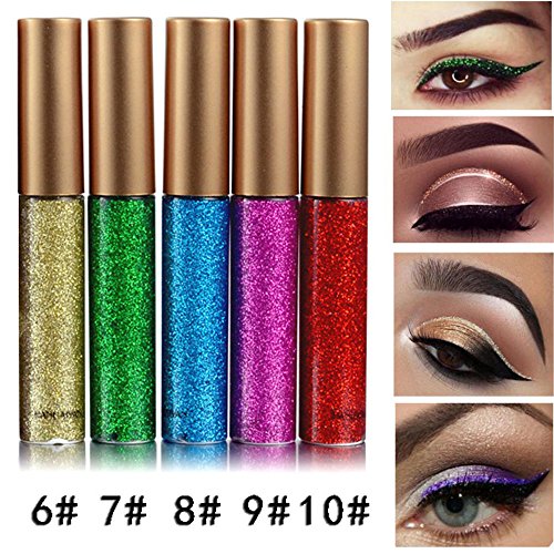 -. Feature : EFFECT: Long Lasting Maintenance, Water-tight, Metallic Glitter Sparkling Effect. / PERFECT MAKEUP - Long-wearing sparkle eyeliner lavishes eyes with incredible glitter and shimmer. / STRIKING COLORS - 5 different colors, ideal for Birthday Party, Cosmetic Show, Live Show, Prom Night, Dance Party, Wedding Makeup. With unique package, would be the perfect gift to your friends, bestie, families. / PERFECT MAKEUP - Uniquely lightweight, water-infused texture, it glides on effortlessly, and then dries down smoothly, locking in maximum sparkle with minimal fallout, making you be the eye-catcher in every occasion. / INCLUDE - 5PCS Liquid Glitter Eyeliner. Fast shipping within days, much sooner than the estimated delivery time.