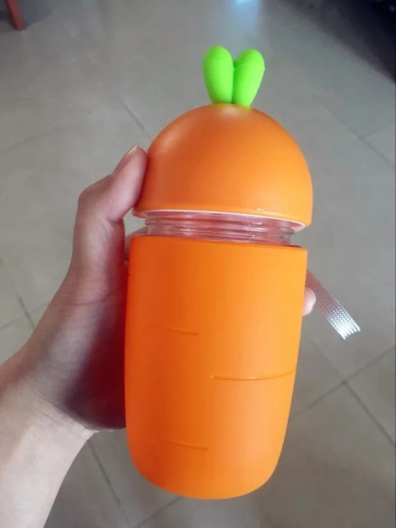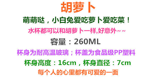 创意可爱萌兔子胡萝卜玻璃杯便携女士耐热水杯儿童学生提绳随手杯