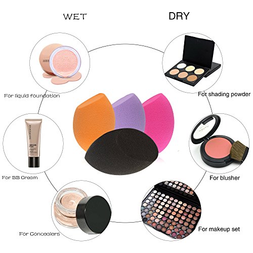 - Delicate egg shaped cosmetics sponges gives you a perfect makeup application, avoid the waste of cosmetics.Wet and dry use, blending sponge turns bigger when wet, dab it evenly to form a flawless makeup.