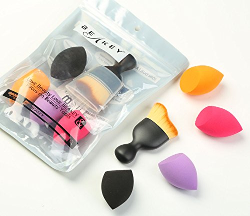 - Set contains: Multi color 4 pcs beauty sponges with 1 pc Contour brush