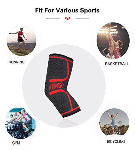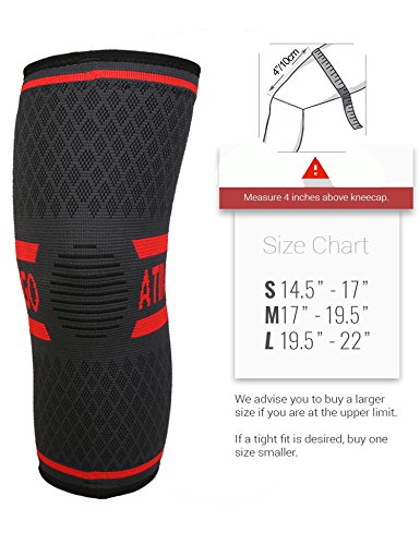 -. Feature : HIGH QUALITY COMPRESSION KNEE SLEEVE:The meniscus knee brace Made with Nylon ,Spandex and Latex. Fabric with elasticity provides great support, comfort, and relief without compromising your mobility.Our knee support brace provides gentle compression to reduce pain from a Torn Meniscus, Sprain or Strain and keeping your knees warm. / UNISEX KNEE BRACE FOR ALL SPORTS FANS:This knee support sleeve you won't mind wearing all day!Knee support for any any activity requiring knee movement, including Running, Jumping, Hiking, Tennis, Basketball, Crossfit, Weightlifting , Powerlifting, or Volleyball. / PROTECT YOUR KNEES:Use Knee brace to participate in regular exercise, sprains, bruises, strain, etc. various kinds of accident may occur at any time.You need a knee sleeve to protect your knee joints.surgery recovery,runners & jumpers knee,ACL,MCL,PCL,meniscus tear,arthritis,tendonitis / KNEE STRAP WITH ANTI-SLIP SILICONE: The top of this revolutionary knee sleeve features double sllicone gel strips to ensure the sleeve stays in place.Our knee brace have close-knit edge can prevent pad from sliding down in the process of strenuous exercise stable compression during gym time. / KNEE SUPPORT & INJURY PREVENTION:ATIMIGO knee brace sleeves hug your knees, provide optimal compression, safeguard your knee muscles and joints, aid in shock absorption and prevent, in the most natural and efficient manner, the incidence of injury. The best Knee Compression Sleeve for women, men and kids.